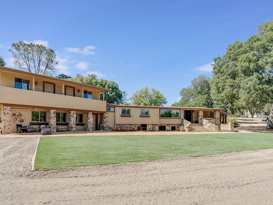 2 fully remodeled homes on 20 oak studded acres. 6000sf warehouse with 3 phase power. 2 seasonal ponds. Short drive from Hwy 50 yet, in a private setting. First home (2000sf) has 4 bedrooms, 2 baths with rugged wooden beams. Excellent views of the ponds and majestic oaks. Kitchen and both bathrooms are fully remodeled. Kitchen features a large island. Living room has a lovely sitting area to watch the wildlife and a pellet stove for the chilly foothill evenings. Second home (1950sf) is a 2 bedroom, 2 bath with an office. Completely upgraded kitchen with loads of cabinets and large island. There are 2 fireplaces. One in the living room and one in the master bedroom. Upper level has a nice balcony with view of the ponds. Both houses have large walk-in closets. Warehouse is 6000sf with large roll up doors on each end and 3 phase power. Property has public water. There is a secondary well that is not currently being used. RV area has its own meter. Large synthetic turf play area. Plenty of room to make your dreams come true. Bring your entire family, all your animals, your business, your toys. Possibilites are many!!