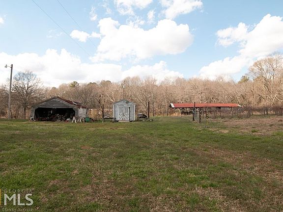 Four sides brick traditional style home in Fairburn. Lots of cabinets in the eat in kitchen. Three bedrooms, two baths, formal dining room and separate living room. Stay toasty warm in the cold winter days with the wood burning stove and enjoy the beautiful Georgia weather from the screened in porch. Walk up the stairs to the floored attic storage. Twelve plus acres with garden areas and out buildings. Property has peach trees, pear trees, blue berry bushes, pecan trees, fig bushes and scupadine vines. Convenient to Pinewood Studios and Landmark Christian School. Sold AS IS.