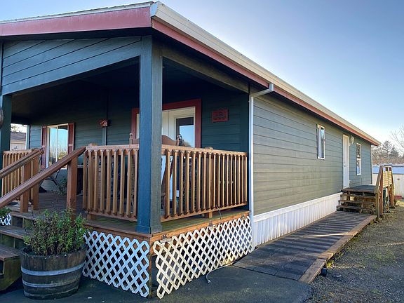 This home was built with quality upgrades including 2 x 6 construction and energy efficient upgrade. Guest bath has a step in tub for easy entry. Berber carpet in living room. Super clean and well maintained. His & her storage sheds in the back with electricity to them. Low maintenance yard. Space rent is $370/mo and includes water, garbage and sewer! Kilchis Reserve area is just a short stroll down the street for access.