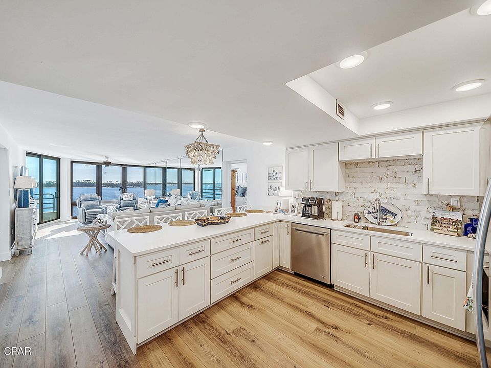 Prepare to be amazed by this beautifully remodeled 5th floor condo at Lagoon Towers in Bay Point! This spacious 2 bedroom, 2 bathroom condo features new countertops, cabinets, flooring, tub, tiled shower, appliances, light fixtures, ample storage and incredible views of the Bay from each room. Open your brand new sliding glass door, step out on the balcony and take in the expansive views of the Grand Lagoon as you overlook St Andrews State Park, Shell Island and the scenic 5th hole of the Jack Nicklaus Golf Course. This complex also offers use of the private pool and day dock for boats. Lagoon Towers is the perfect place to live or use as your vacation home. Bay Point is not just a neighborhood, it is a Lifestyle. Get on your golf cart and cruise around the community, play a round of golf, visit the spa, take a yoga class, enjoy a fine dining experience, dip your toes in the sand, join the boat club or enjoy some fish tacos and a cold beverage while taking in views of the bay with some of your neighborhood friends.