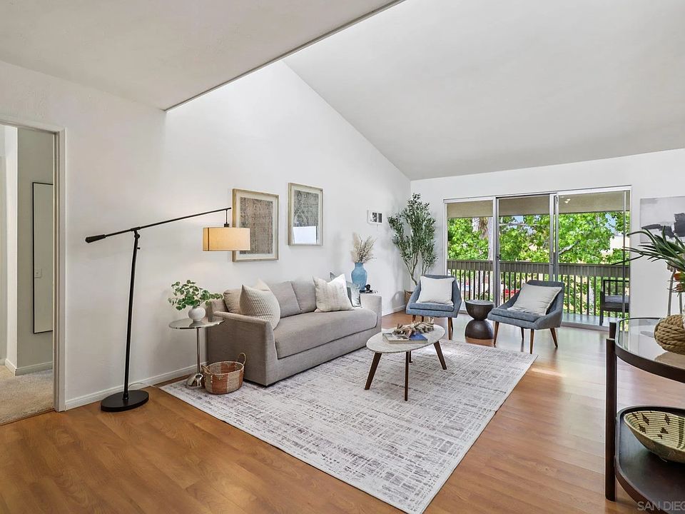 Soaring vaulted ceilings, clerestory windows, and an open floor plan create a bright, airy vibe in this spacious top-floor condo. The living room, dining area, and kitchen flow seamlessly onto an extra-long balcony with Bay Views! The updated kitchen features nearly new Samsung Smart appliances and smart-home compatibility, while the split dual-primary suite layout offers flexibility for guests or roommates. Move-in ready with abundant closet space, a reverse osmosis water system, and two secure parking spaces (one in the garage). Located in The Plaza, a beautifully landscaped gated community with a serene pond, two pools, two spas, tennis courts, a clubhouse, and multiple outdoor gathering areas. Just minutes from both the beach and the bay, you’ll enjoy the best of Pacific Beach living — from boardwalk strolls and water sports to vibrant dining, shopping, and nightlife.