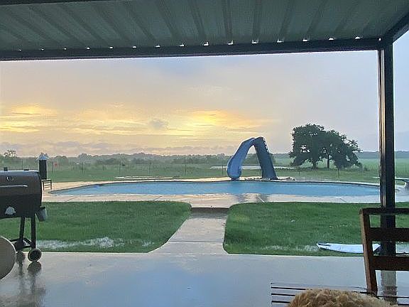 Welcome to your own slice of PARADISE! With a beautiful pool and 2000 SF shop, this 4 Bedroom/3 Bath, 2264 SF home on 5 acres is IDEAL for the family that loves to entertain but also looking to escape the hustle and bustle of the city. Built in 1998 and remodeled in 2013, this home features a large, open living space with a split bedroom layout perfect for any family. Granite countertops and stainless steel appliances accentuate the cozy yet functional kitchen. The HUGE master bedroom sits on its own side of the home, allowing busy parents to relax and enjoy the peace & quiet. Master bath features a walk-in shower, soaking tub, his/her closets, and a double vanity with a granite countertop. Bedroom 2 also has its own corner of the home containing a walk-in closet and attached bathroom, PERFECT for guests. Bedroom 3 and 4, located down the main hallway, both feature walk-in closets and are conveniently next to the hall bathroom. Multiple closets throughout the house make staying organized easier than ever. The 2-car garage features a 6'x6'x78" corner storm shelter that will give you peace of mind this Spring. A spacious back porch with a wall-mounted TV, makes it perfect for adults to relax while the kids enjoy a day of swimming. The 40' x 20' inground pool with tanning ledge, slide, and diving board will entertain your kids and their friends for hours! The 2000 SF metal shop has a 20' porch with a walkthrough and insulated roll-up doors on both the North and South sides. The batting cage with turf will make any baseball/softball-loving kid's dream come true! The property also contains a stock tank located on the North end that has never gone dry!