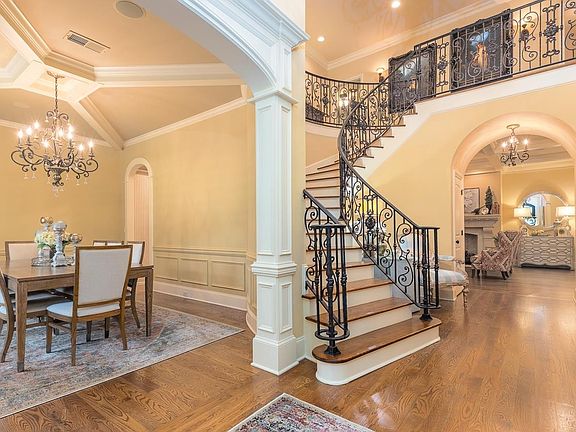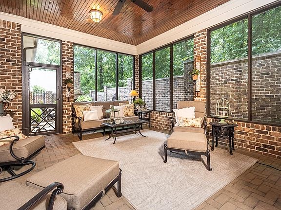 Welcome to this exquisite residence that embodies elegance and sophistication. This 4-bedroom, 4.5-bathroom home is nestled on a private lot in a serene cove setting. The exterior showcases timeless 4-sided brick construction, while the interior greets you with a grand 2-story foyer and a sweeping staircase, emphasizing the home's sleek architectural design. The main level features a captivating primary suite, a second bedroom with an en-suite bath, a cozy fireplace, and generously proportioned living and dining areas. The chef's kitchen is a culinary dream, equipped with granite countertops and designer cabinetry-perfect for hosting. Amazing custom closets throughout! Step outside to a stunning flagstone courtyard, complete with a fireplace and a lighted fountain, offering breathtaking views of the conservation green space. The meticulously maintained landscaping enhances the peaceful ambiance, while the screened porch provides an ideal space for year-round outdoor enjoyment.