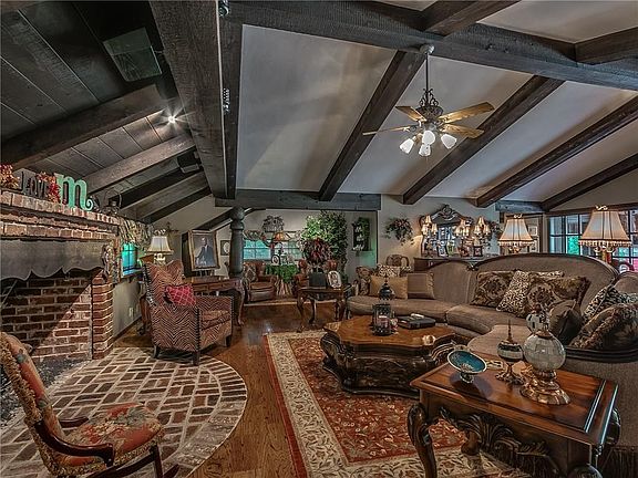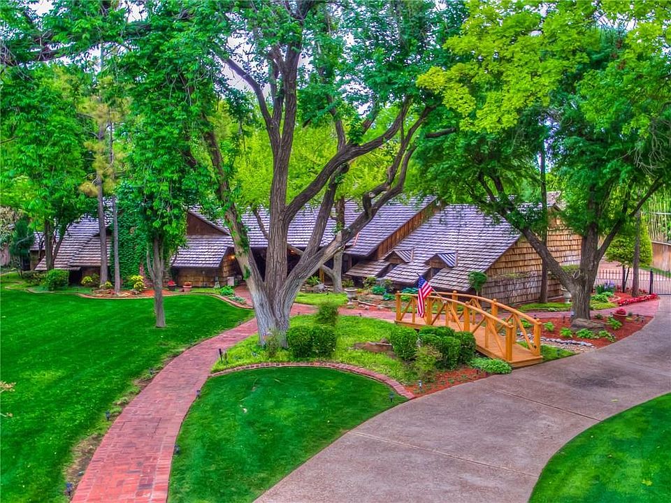 NESTLED AMONG MATURE TREEES, THIS LUKE ROGERS MASTERPIECE IS A FAIRYTALE DELIGHT, WELL SUITED FOR HANSEL & GRETEL. LOCATED ON .99 ACRES IN THE MIDDLE OF OKC COMPLETE WITH LUSH LANDSCAPING, CUSTOM GAZEBO OUT KITCHEN WITH A FIREPLACE, TV & STEREO SYSTEM. ENJOY THE RESORT STYLE SETTING WITH A COOL DRINK OR A DIP IN TH LAGGON STYLE POOL & SPA RELAXING WITH THE SURROUND SOUND OR THE TRICKLE OF THE ROCK WATERFALLS. THIS UPDATED HOME IS A CRAFTSMAN'S WONDERLAND. CUSTOM WOOD THROUGHOUT WITH VAULTED CEDAR BEAMED CEILINGS. ARCHITECTURE WILL ASTOUND FROM ITS EXTREME WOODWORK TO ITS NOOKS & CRANNIES MANY WINDOW SEATS AND THE CARVED SPIRAL STAIRCASE LEADING TO THE SECRET 4TH BEDROOM WITH A FULL BATH. FEATURES INCLUDE 4 BEDS, 4 1/2 BATHS, 2 LARGE LIVING, 2 DINING 4 FIREPLACES & ESTATE GATE. THE KITCHEN FEATURES GRANITE, STAINLESS STEEL APPLIANCES, 6 BURNER GAS STOVE, CONVECTION OVEN, ICE MAKER, 2 WALKIN PANTRIES & A BRICK ROUND FP. YOUR LITTLE SLICE OF HEAVEN AWAITS!