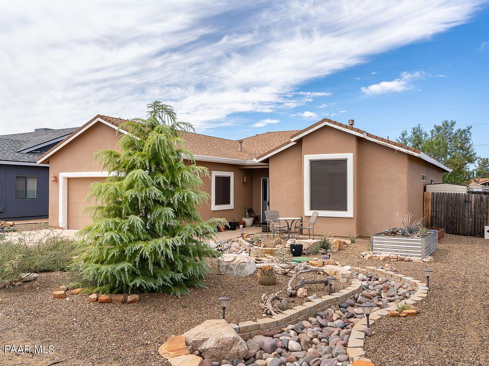 Lovely home with mountain views in Wickiup Mesa! Very well maintained with 3 bedrooms, 2 bathrooms, 1,315 square feet and 2 car garage. Tile flooring with NEW CARPET in bedrooms! Beautiful wood plantation shutters throughout. Spacious family room featuring a cozy gas fireplace, perfect for this chilly season. Great kitchen with ample cabinet space and granite counters with adjoining dining area. Nice laundry room with utility sink. Generously sized primary bedroom boasts a large ensuite bathroom with dual vanities and water closet. Relax in your private oasis of the fenced grassy backyard with fantastic greenhouse and covered patio. Don't hesitate - schedule your showing today!