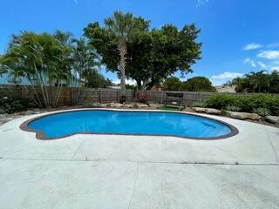 Newly remodeled 4 bed/3 bath single family furnished home available for rent starting Sept 1, 2024! Beautifull corner lot with pool and large outdoor patio area as well as a screened in porch with pool table for recreation. Large backyard is fenced in for privacy. Impact windows throughout, new electrical panel, a new tankless water heater and a metal roof. Rent today and enjoy the best of Florida living - close to beaches, highways and world class shopping and restaurants. A rated school district as well! Warehouse is not included. Easy to show