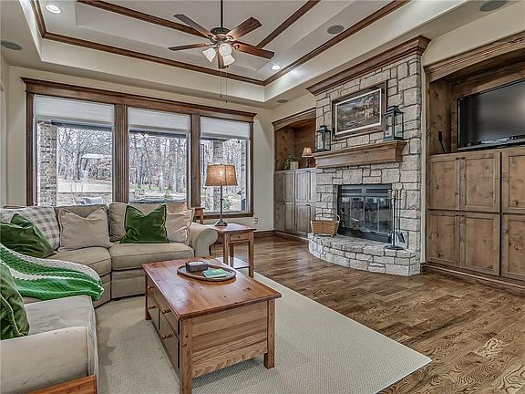 This is one of those forever, ever homes. With just over 2,700 square feet of living space and a 1 acre lot you will have plenty of room to enjoy your days both indoors and out. Open concept with large living room, stone fireplace with custom woodwork and cabinetry throughout. Oak floors in the living room, dedicated office and dining room add to the warm, cozy appeal. Chef friendly kitchen features a massive island, induction stove top, pot filler, granite, pantry and double ovens. The breakfast nook overlooks the beautiful backyard with wooded terrace and custom landscaping. Master bathroom has walk-in shower and separate tub. 2 bedrooms include large closets and share a spacious Jack and Jill bathroom. Located close to Boeing, Tinker AFB, Rose State College, shopping, dining, & highway access. Call today for a private showing.