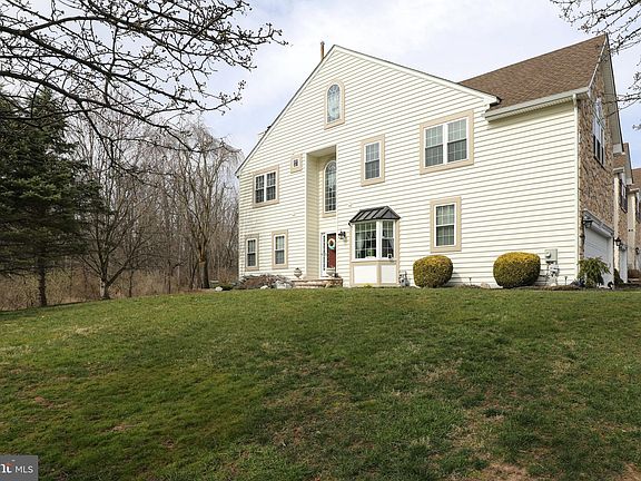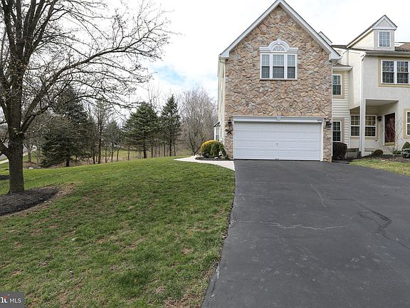 Highly differentiated end unit townhome in the Courts at Summer Hill that has been continuously upgraded and meticulously maintained for 20 years by one owner. Premium lot sitting high along Township land preserves with beautiful nature views from every window, the front door, and sliding door to the deck and paver patio. Newer high efficiency Rheem HVAC (2015), water heater (2019), and upgraded double hung windows throughout the entire home (2009-2019) make this one of the most efficient homes in the neighborhood based on PECO monthly Home Energy Reports. 2008 Kitchen remodel includes 42” maple cabinets with pull-out shelves and spice rack, soft close drawers, additional cabinets including a microwave shelf, under-cabinet lighting, extended center island with counter seating, granite countertops, stainless steel appliances and range hood, counter depth refrigerator, quiet dishwasher, high-end finishes, and a farmhouse sink, all designed for functional flow. Mid-tone hardwood floors throughout most of the ground level, refinished in 2018. Custom built “barn door” window treatment made from reclaimed wood is an eye catching feature in the family room. There is an expansive master bedroom with an upgraded en suite with an easy clean barn door-style glass shower enclosure, soaking tub and newer (2020) double sink vanity. Outside there is newer hardscaping including walkway flower bed walls & steps. The metal roof over the dining room bay window was added as was a window to the second floor hall bathroom. Stucco remediation was completed with premium finishes, upgraded trim, and architectural improvements going far beyond replacing the stucco and there is a transferable warranty. The two car garage is a big bonus as is the unfinished basement for storage or equity building possibility if you want a finished space. High attention to details make this home a must see!