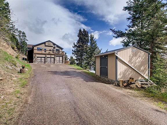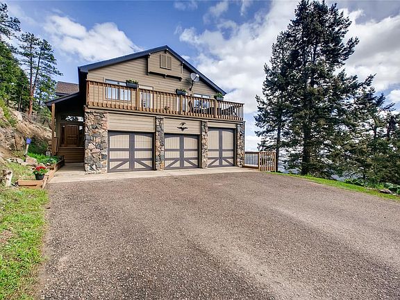2 story with full finished walkout basement, located on 8+ private acres and bordering "Pence Park", (a hiker's paradise). You'll be astonished with the incredible mountain and city of Denver views from the home interior as well as the 4 large deck areas. Main floor laundry, 3 wood burning fireplaces, wet bar in Great room, 3 car garage, spacious rooms, NEW ROOF and very private setting. Approximately 2.5 miles east of downtown Evergreen!