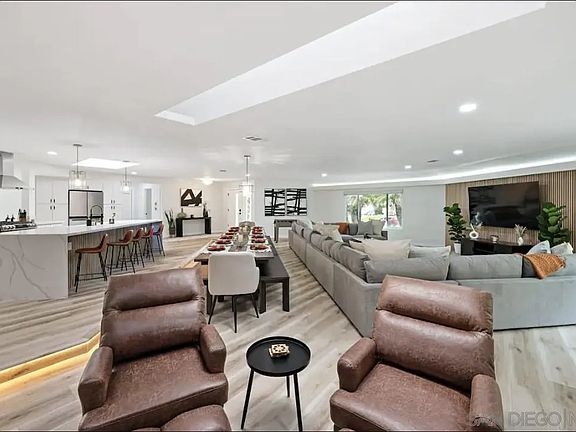 Welcome to 4600 Park Drive in Carlsbad, an amazing single-story, renovated home that redefines modern living. This spacious residence features 5 bedrooms, 3 baths, and sits on a huge lot, offering plenty of room for an ADU. As you step through the front door, the beautiful interior opens up, defining the term "Open-Concept." The layout is perfect for family living, entertaining guests, and hosting gatherings. The heart of the home is the kitchen area, which includes a breakfast nook and a wine bar. Recently renovated with the latest materials, colors, and designs, the kitchen boasts custom quartz countertops, stainless steel appliances, laminate wood flooring, and a wonderful center island workspace. The primary suite and additional bedrooms provide ample space and privacy for everyone in the household. Each bathroom has been thoughtfully updated to blend style with functionality, ensuring a luxurious experience. Outside, the expansive lot offers endless possibilities. Whether you envision creating a garden oasis, adding an ADU, or designing a play area, there's plenty of space to bring your dreams to life. The property also features an oversized driveway, making it convenient for hosting gatherings or for families with multiple cars. Located near the scenic Carlsbad Lagoon, this home offers easy access to water activities, including kayaking, paddleboarding, and fishing. Enjoy the serene beauty of the lagoon or explore the surrounding attractions. You're just moments away from beautiful beaches, top-rated schools, parks, shopping, and dining.