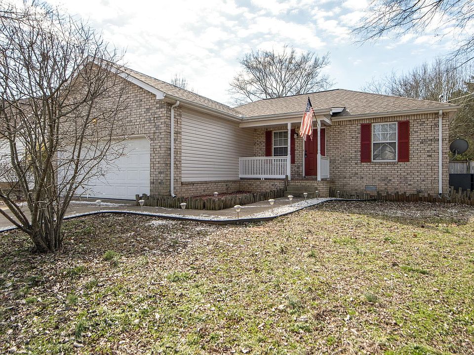 Beautiful one-story ranch home with open floor plan. Covered front porch and back patio, with fire pit and hard-scaping. Privacy fence in back yard . Private treeline next to house. Huge living room with fireplace. New counter tops in kitchen, freshly painted cabinets with new hardware. Fresh paint on walls & trim throughout the house. New Carpet in two bedrooms. Laminate in living room and master. Master bath has double vanities and his/her closets. New flooring in hall bathroom.