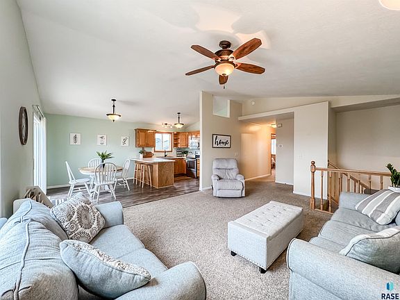 Here it is!!! Welcome to your dream home in the desirable southwest area of Sioux Falls! This stunning split foyer walkout boasts 4 beds, 3 baths, & an oversized 2 stall garage. As you enter through the porch & into the large foyer with ample storage space, you'll immediately feel at home. The open floor plan features vaulted ceilings & an abundance of natural light, creating a warm & inviting atmosphere. The spacious kitchen is perfect for entertaining with a breakfast bar. Enjoy meals in the dining room or step outside onto the deck for al fresco dining. Retreat to your master bedroom oasis complete with vaulted ceilings, a large WIC & a private full bath. An additional bedroom & full bath on the main level provide plenty of space.  The lower level expands your living space with a large family room that opens to the backyard, two additional bedrooms, another full bath, a laundry room, and ample storage.  Situated on a corner lot, this home offers privacy while still being part of an established community. The fenced yard is perfect for pets or kids, while the landscaped lawn & sprinkler system make maintenance a breeze while a storage shed adds convenience. Plus a new A/C in 2024. Schedule a showing today before it's gone!