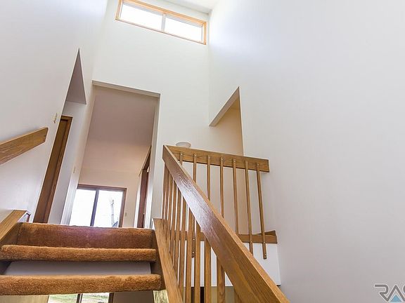 Lovely setting on a large, picturesque .85 acre lot. Great structure, lines and flow to this home. Accented by vaulted ceilings and an abundance of large windows, you will love the light streaming in. Featuring 4 bedrooms and 2 1/2 bathrooms, this walkout ranch style home includes a main floor family room as well as one in the lower level. Both have fireplaces; one is wood-burning, one is gas. House is priced to sell below its assessed value. Bring your creativity with you! City of Sioux Falls states that South side setback for an additional garage is five feet. (about 40 feet from S side of garage to property line. Shingles 2012. Concrete Drive 5 years old.