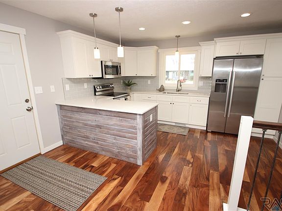 OPEN HOUSE CANCELLED! Newly remodeled ranch home is conveniently located on the southeast side of Sioux Falls close to elementary school, parks, bike path, swimming pool, wellness center, library, shopping, dining, & entertainment. Total of 4 bedrooms, 3 bathrooms, & 2,539 sq.ft. Beautiful updated kitchen with quartz counters, hardwood floors, stainless steel appliances and eat-in dining area. Huge family room on the main is enhanced with wood beam ceilings & floor-to-ceiling stone fireplace plus mini bar. Sliding door to deck & fenced-in yard. Master suite is spacious with walk-in closet & private bath. Lower level features garden level windows, another family room, 2 more bedrooms, multipurpose room & bath; perfect for guests or teenagers. 2 car garage. New updates throughout include: all new windows, kitchen cabinets, all floor coverings, doors & trim work, quartz countertop, vanities, fresh paint throughout, light fixtures, brushed nickel hardware & the list goes on!