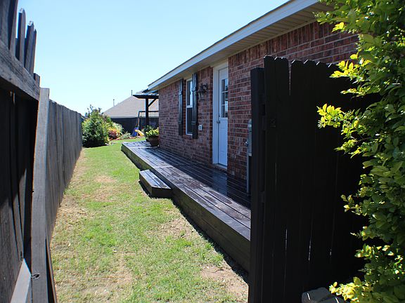 Move in ready! Bring your friends and enjoy this beautiful landscaped backyard. Oversized, open patio/deck for all your family and friends! Large, open floorplan for this lovely 3 bedroom home. Playset and storage building will stay with property. Great location; close to Tinker AFB, Heart Hospital, OKC, and other amenities. Easy access to I-240 and I-35.
