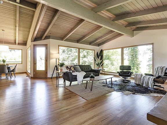 Secluded Mid-Century modern home in the Council Crest/Hessler Hills nghbrhd!Absolute privacy and quiet,stunning Mt.Hood views,less than 10min to OHSU and less than 15min to dwntwn!Original HW freshly redone,new carpet,oil tank removed and is now on NWNtrl, new furnace.Just under 1 acre, backyard backs to Marquam Nature Park.Tons of natural light from the floor to ceiling windows,wrap around deck to MasterBR.2 Kitchens,in-law quarters? [Home Energy Score = 3. HES Report at https://rpt.greenbuildingregistry.com/hes/OR10125668]