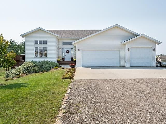 Enjoy country living just minutes from town! This multi-level home is located in a beautiful private setting in Prairiewood Estates. Walk through the front entrance into a welcoming open-floor plan featuring vaulted ceilings in the kitchen, dining, and living room. The kitchen features beautiful maple cabinets, updated appliances, and a nice walk-in pantry. The upper level includes the master suite with a full bath and large walk-in closet! There is another bedroom and additional full bath on this level. Head downstairs to another bedroom along with laundry and storage (plumbing available for a 3rd bathroom.) The basement has a large family room, adjoining office, and a walkout. Enjoy the beautiful North Dakota outdoors in this home featuring a private 1.5 acre lot, nice sized deck, patio, landscaping, and a campfire pit. The attached 3-stall garage has plenty of storage for vehicles and toys. Call a Realtor for a showing today!