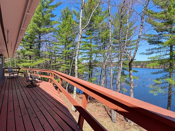Own the best spot on the lake with an impressive 500' of ftg & 2.7 acres on Lake of the Hills Lake. This remodeled home is ready for you to move right in & start enjoying summer. The porch offers a panoramic view of the water & allows for the Loon calls to lure you to sleep. If you are not living on the lakeside porch you will be gathering on the sun porch w/windows on all sides. The main level offers a cozy wood burning FP, everyone needs that in the Northwoods & a warm updated kitch & din rm. The master bedrm, actually, all the bedrms have lake views. Lower level has another living area w/another FP, bedrm & full bath. After the long day of swimming or snowmobiling you can warm up in the sauna. There is lots of storage here, so easily a family home. The oversized 2 car detached garage is a huge plus but the adorable storage shed is also a bonus for more garden & yard storage. This is a beautiful cared for home with a warm family feel & you should look today before it is gone.