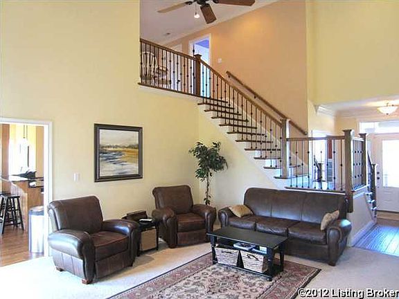SELLERS RELOCATING! QUICK POSSESSION! OVER 4150 SQFT FINISHED, this 1.5 STORY FINISHED WALKOUT HAS 5 BEDROOMS/4.5 BATHS. The all custom built brick & stone Arts & Crafts home located in the center of Oldham County in Heather Green offers a fabulous floor plan & a price that is thousands below appraisal. Impressive quality finishes and great square footage for the money. The 1/2 acre treed lot is top notch with a reed view and is a secluded cul-de-sac. The home comes with all the bells and whistles; a large volume 2 story ceiling great room, ceramic tile floors, custom kitchen cabinets, granite counter tops, hardwood flooring, crown molding, custom bookcases, formal dining room, security system, a dual zoned heating and air system and all stainless appliances. The large first floor Master suite has a whirlpool tub, glass enclosed shower with rain head, and his & hers vanities. Detailed moldings, superior trim work, top of the line Pella Windows w/ screens. Fantastic family neighborhood. Close to award winning Oldham County Schools-where your student goes to their neighborhood school.
