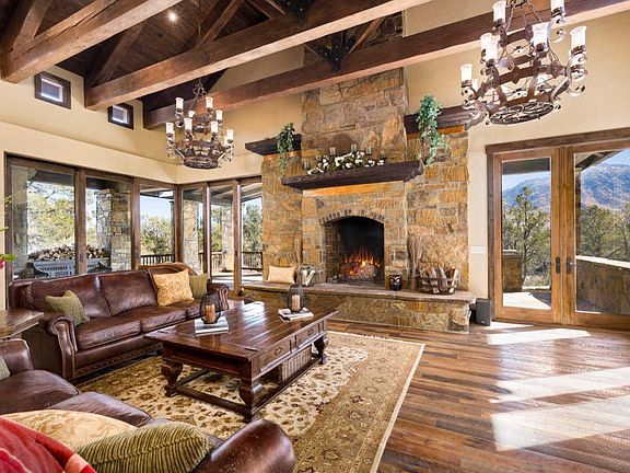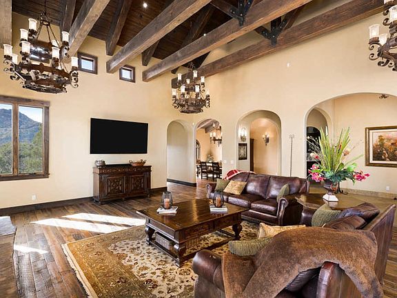 Exquisite Custom Estate designed with superb craftsmanship! This gorgeous home, near the base of Granite Mountain, is luxury living at its finest with over 10,000 SF, stunning beamed ceilings, copper touches and hand laid stone throughout. Each living space showcases the love of the outdoors from picturesque views and the disappearing sliding doors to the wrap around decks, the outdoor living blends perfectly with indoor comforts. The chef's kitchen boasts two large islands, a Wolf stove with 2 ovens, sub-zero refrigerator and freezer, dual dishwashers, and much more. The master suite features a sitting area, expansive bathroom with jetted tub and dual, height varied vanities, and two beautifully appointed master closets. Upstairs features a family room and a game room/man cave, (cont.)