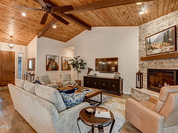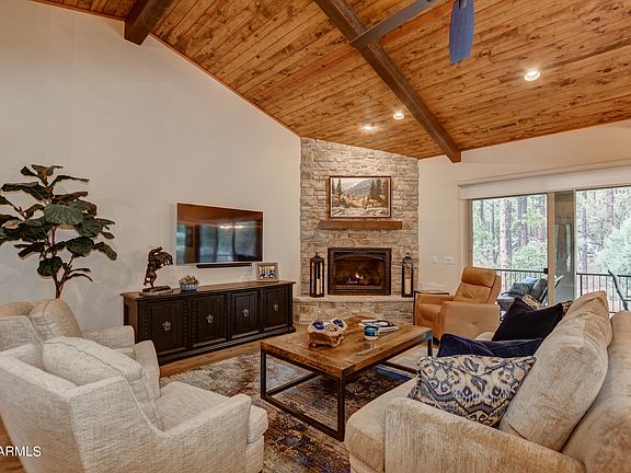 Stunning Prescott home in the pines w/ so many details throughout! Vaulted tongue & groove ceilings, beams, & wood floors. Open living room w/stone, gas fireplace. Formal dining w/ outdoor access! Stately kitchen w/ granite counters, large island & stainless steel appliances, including a warming drawer &convection microwave! Large owner's en suite w/ tile walk in shower & garden tub w/ views of the forest. Split floor plan & additional bedrooms great for guests,hobby room or in-home office! Beautifully landscaped backyard embracing surrounding natural vegetation & mature trees creating a private oasis. Covered backdeck w/ built in heaters to sit & enjoy your morning coffee. Take in the fresh mountain air while enjoying the Arizona skies. Come see this stunning home before it'sgone!