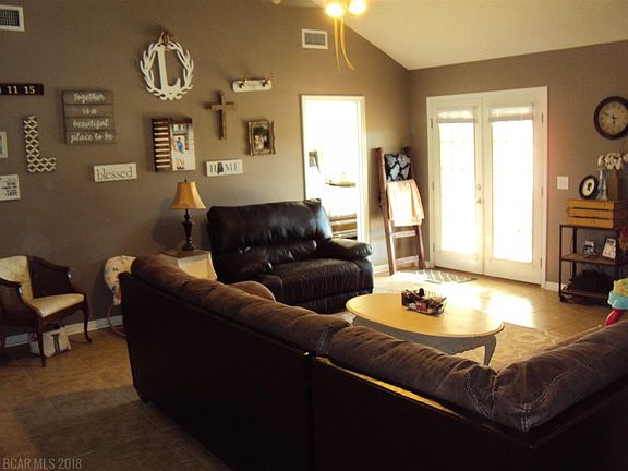 Extremely well maintained 3 b/r, 2 bath home conveniently located near Baldwin County High School. Metal roof (2013) and vinyl exterior offers low maintenance. Privacy fenced back yard. Wood burning F/P in living room with vaulted ceiling. Tile throughout except carpeting in bedrooms 2 and 3. Storage shed convey. Kohler generator. Attached two car garage. HVAC system (15 SEER) installed in 2011. Enjoy the covered back patio and wooden deck that over looks the large fenced back yard. This home is easy to show and move in ready!