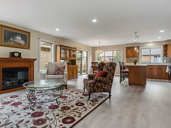 Welcome to the desirable, 45+ gated community of Halcyon Meadows! This 2 BEDROOM PLUS DEN RANCHER features an open concept main living area offering a cozy family room, bright and open kitchen with island and black appliances, as well a spacious dining room with access to the partially covered patio area and lawn area, great for those with pets! The good sized primary bedroom boasts new carpet, a large walk in closet & 3 piece ensuite with walk in shower. There is a separate laundry room with a sink, new floors, cabinets and countertops. New vinyl plank flooring and A/C! DOUBLE CAR GARAGE with room to park 2 more cars in the driveway! This lovely community has a fantastic clubhouse, exercise facility, rec room, library and guest suites available. Don't miss this one!