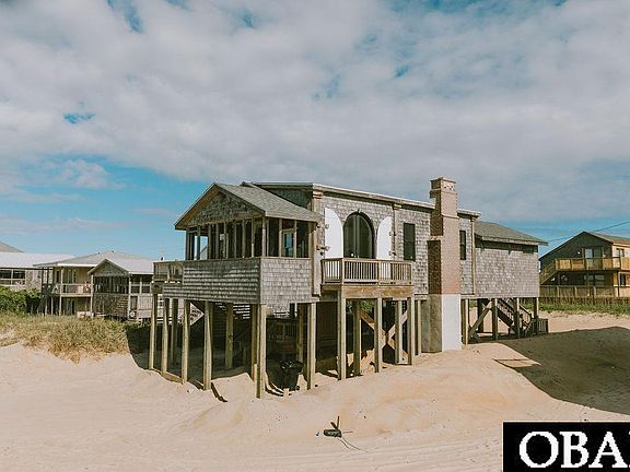 Discover a unique semi-oceanfront gem in the heart of Buxton, NC. This one-of-a-kind beach cottage, originally built in 1956, combines timeless charm with modern comforts, offering breathtaking ocean views and an eclectic artistic flair. Step into a home filled with distinctive touches. A brick wood-burning fireplace, framed by the beach backdrop and adorned with conch shells, creates a cozy focal point. Wood shutter saccentuate arched ocean-facing windows, while wood ceilings and a chandelier add a touch of elegance. Rustic wood floors run throughout, enhancing the home's unique character. The recently updated kitchen boasts quartz countertops, a Cle tile backsplash, and a sleek retro refrigerator. In recent years, major updates include new pilings, a new roof, updated insulation, electrical, and plumbing systems, new decks and stairs with stainless steel fasteners, an outdoor shower, washer and dryer, and an outdoor HVAC unit. Upon entering, you are greeted by a charming, airy, and eclectic interior. To the left is the freshly renovated kitchen; to the right, a dining area framed by an ocean-facing arch window. The living room, at the heart of the home, is balanced by the brick wood-burning fireplace, providing a cozy and inviting atmosphere.Off the living room is a king-sized bedroom and a shared full bathroom. On the other side of the home you will find a second full bathroom, a bedroom with two twin beds, and access to a half bathroom and laundry room with a full-sized stackable washer and dryer. A newly added third sleeping space off the twin bedroom features shiplap walls and ceiling, a bright retreat with a separate entrance leading to the carport and the outdoor shower – perfect for rinsing off after a day at the beach. Enjoy the beauty and tranquility of Buxton beaches right outside your door. Visit the Cape Hatteras Lighthouse on the National Seashore, take a beach ride out to Cape Point, or spend a day on the sound at Canadian Hole. The sellers successfully rented through the peak seasons of 2022, 2023 and part of 2024, making this a great investment opportunity or second home. Experience the unique blend of old-world charm and modern convenience in this eclectic beach cottage. Schedule a viewing today and see why this Buxton home is truly one of a kind.