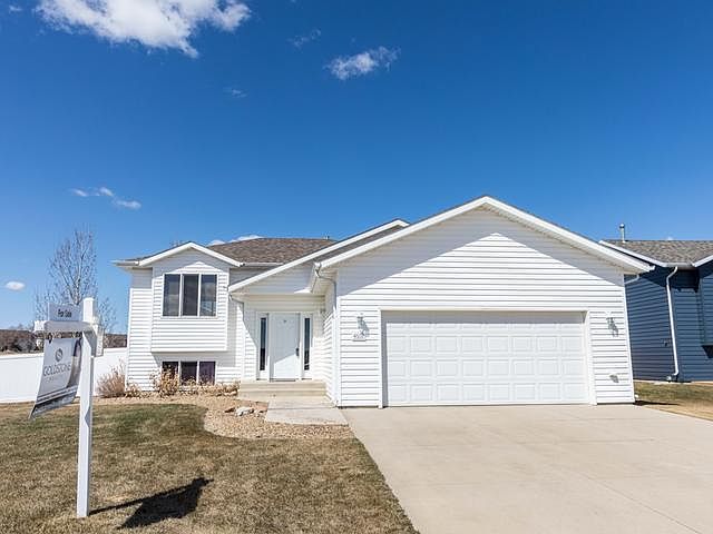 Beautiful home located in North West Mandan close to Red Trail Elemntary school. This home features an open floor plan, a kitchen with lots of cabinets, and a breakfast bar. The dining room has a sliding door which opens to the deck. The main floor also includes a living room area, 2 bedrooms, and a full bath. On the lower level, you will find a spacious family room, another full bath, 2 additional bedrooms which include egress windows, and a laundry room. The double garage is heated and has a floor drain, the backyard is fully fenced with Maintenance Free Fencing, and has a sprinkler system installed.