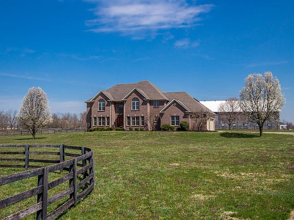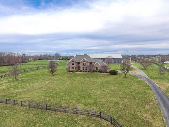 Fairwind Farm IS Kentucky at its finest! The 13 acre farm located in historic horse country features a 150+ year-old barn (recently renovated) with 18 stalls, office, tack room, wash bay, heated maintenance room, outdoor lighted riding area, and equipment storage. There are multiple paddocks for the horses to enjoy the beautiful Bluegrass. The home's open floor plan is perfect for entertaining. New paint throughout the entry and upstairs bedrooms. There are over 6,000 sq ft of finished space and an unbelievable 2nd floor master suite that includes a sitting area as well as an additional space that could be used as an office or nursery, huge walk-in closet, and large tiled shower. Other features include Brazilian cherry floors throughout the first level, copious amounts of natural light, custom millwork, heated 3 car garage, and available 1st floor master suite. The basement has a large theater area, bedroom, full bath and gym or crafting area.