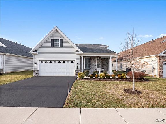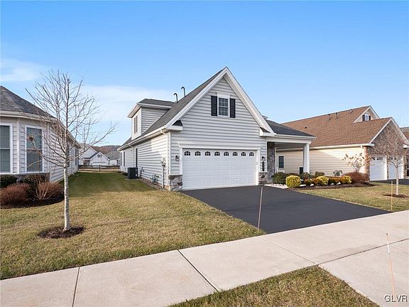 Gorgeous & Extensively Upgraded 55+ Home in Prime Location! Step into luxury with this stunning 3-bedroom, 3-bathroom detached home offering an expansive floor plan and exquisite upgrades throughout. The first floor boasts wide plank hardwoods, a private office with glass doors, and a Great Room with a palladian window and gas fireplace. The gourmet granite kitchen features 42” custom cabinetry, a tile backsplash, stainless appliances, and a breakfast nook with French doors leading to a paver patio. Retreat to the Master Suite with a tray ceiling, walk-in closets, and an elegant tile bath with an expanded shower. The loft upstairs overlooks the Great Room and connects to two spacious bedrooms, a tile bath, and a finished storage room. Outdoors, enjoy the wrap-around covered porch or entertain on the back patio. Nestled in a resort-style 55+ community near Rt 78, 309, and the Promenade Shops, amenities include a 7,000 sq. ft. clubhouse, pool, spa, tennis/pickleball courts, bocce, putting green, and walking paths. Don’t miss this dream home!