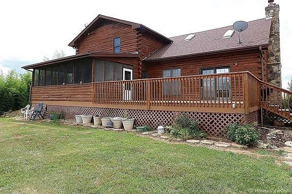 BEAUTIFUL LOG Home in Great Location! Open Main Level w/Vaulted Ceiling, Woodburning Fireplace, Spacious Kitchen & Screened Porch. Master Bdrm on Main Level. 3 More Bdrms Upstairs & Full Bath. Finished Lower level w/Wood Stove in Family Room Area, 5th Bdrm & Another Full Bath. Storage Room. Walkout to 2 Car Carport w/Attached Workshop. Nice Barn w/Stalls on 3+ Acres w/Fencing. Lots of space to Enjoy Country Living!