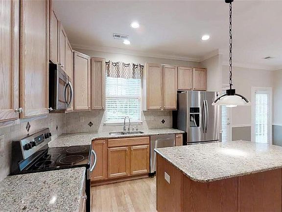 Charming Montibello All BRICK, ONE LEVEL Townhouse w/split bedroom floor plan. Vaulted Living Room w/access to screen porch. Kitchen w/42 inch cabinets, granite, tile back-splash, all-new Samsung ss appliances (2018), island, hardwood floors. Large Master w/trey ceiling, huge closet, and plenty of natural light. Patio off breakfast overlooks natural area. End unit, Two car garage, and NO Stairs! Refrigerator, washer, and dryer convey. Minutes to interstates, restaurants, shopping, parks, and recreation.