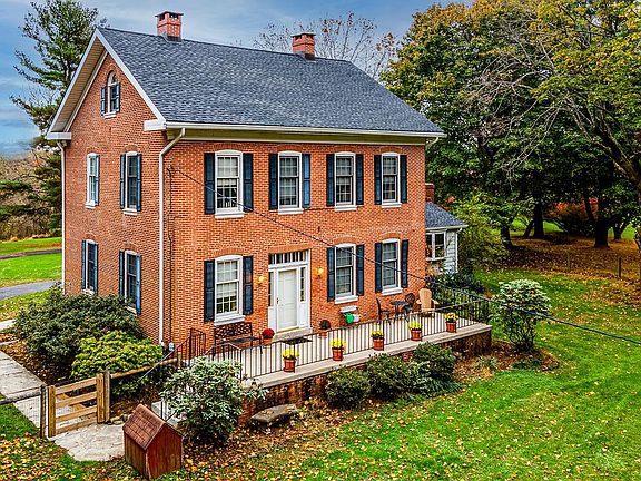 If you love history....you will love this home built in 1860 that boasts a ton of charm and character. A six bedroom Colonial brick home situated on 14+ acres with views of wildlife, fields, pond, shed, and pole barn. Sit on your front porch, sipping coffee, and enjoying the view....it is truly country living at it's best!! Walk into the past...original flooring throughout many rooms in this home, high ceilings, built ins and beautiful moldings. The kitchen and family room addition were added in 1966. Recent improvements include roof 2017, Furnace 2015, & Stove 2018. With over 2700 square feet of living space this home has lots of room.....including a Separate dining room featuring built ins, living room leading to a flagstone patio, office/library, 2nd living room, & family room. Conveniently located main level laundry & half bath. The 2nd level features 4 bedrooms including a master bedroom with a separate sitting room/dressing area (or bedroom) & full bathroom, 2nd bedroom also featuring full bathroom. Head to the next level and you will find two additional bedrooms. There is lots of storage as you walk around the exterior including walk 2 sheds and a 40x60 pole barn. The property carries 2 developmental rights **please confirm with the county & does have environmental constraints. The home is being sold As Is.