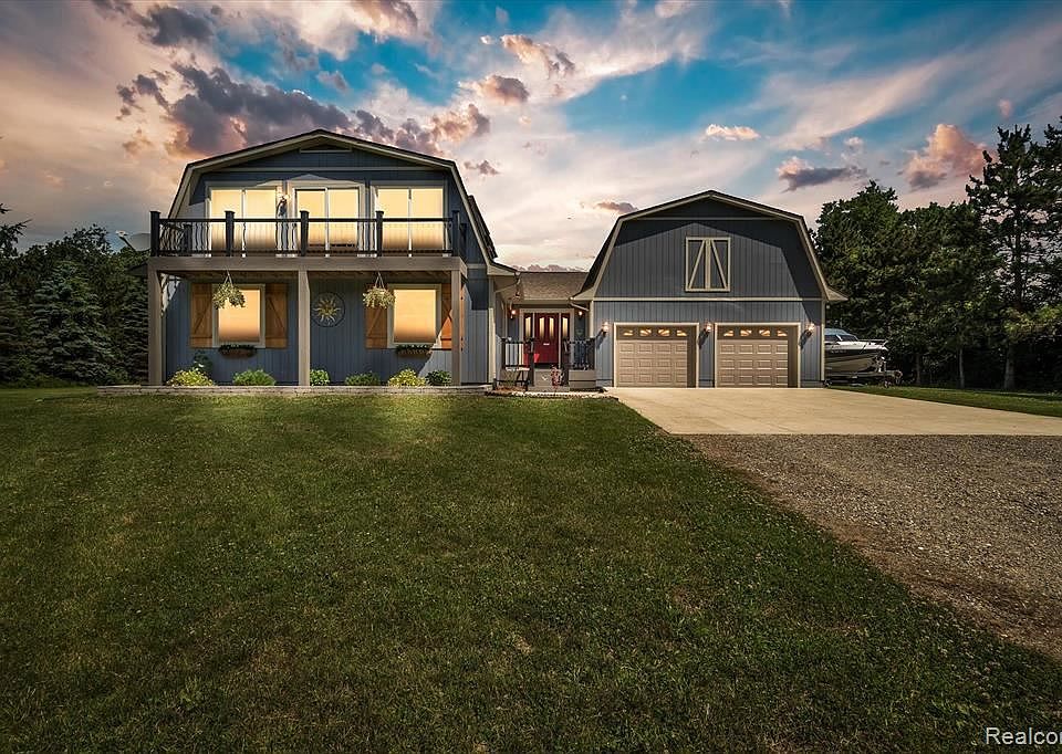 Time to list, sellers Have found their dream home! Beautifully maintained 3b, 2b + laundry. Open concept kitchen/living/dining w/ vaulted ceilings. Primary bedroom upstairs with spa bath. WIC and loft area. Basement s well as garage has custom cedar/stucco woodwork. Large storage room 20x26 above garage. New Azek front porch and balcony with updated landscaping. Nestled on 6.8 prime hunting land, trails throughout with a deer blind. Brand new washer and dryer and stove! Lapeer county taxes and natural gas help keep the costs low. Immediate occupancy. Buyers agent must be present for all showings.
