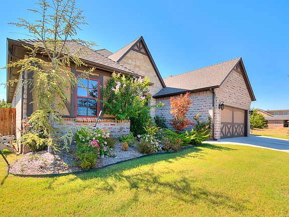 Inside this stunning family home, you'll find a modern layout with amenities designed for the way families live today at Centennial at Iron Horse Ranch. Stone fireplace is the focal point of the living room, enchanted by rich hardwood floors throughout the main areas. Enter your study through grand wrought iron doors. Gather friends and family in the kitchen with knotty alder cabinets, long center island, and stainless Bosch appliances including a 5 burner gas range. The highlight of your master suite is the luxurious master bathroom, complete with dual sinks, jetted bathtub, soothing shower and closet with built-ins and makeup vanity. You will thoroughly enjoy your outdoor space with a covered patio including ceiling fan and sun shades. Stylish mud bench adds convenience. Extended 3 car garage. Don't miss this outstanding home in a popular Edmond neighborhood. Picture yourself living in this beautiful home. Start your new lifestyle at 4601 Deerfield Drive... Welcome Home!