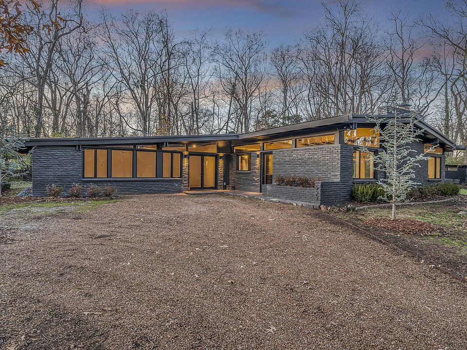 An architectural gem that has been newly and mindfully renovated. This unique mid-century home is perfect for a small family or individual seeking a special live/work layout. Set back from the street, the house is on a special 1.5 acre property. The original architecture is well proportioned with beautiful windows, wood beams, great angles and hardwood floors. The kitchen has new appliances and modern finishes. There is a space for a dining table as well as casual meals at the kitchen counter. The great room is ideal for entertaining. It has a central fireplace and outdoor deck. The family room, which could be a large home office or studio, is a nice size for small groups or movie night. The common areas are open and airy. The bedrooms are intimate and cozy. All 3 of the bathrooms are tiled and have new fixtures. The primary bathroom has a bathtub and shower. The two smaller bedrooms, which could function in other ways, have a shared bathroom. The laundry room has washer-dryer hookups and additional storage space. Outdoor parking for 3 cars. The house is heated with an geothermal system. There is a natural spring and low-level creek running through the property. The lawn feels like a secret garden and has a storage shed. The neighborhood is family friendly and a short drive from Melrose, 12 South and Green Hills. Owner pays for water. Renter responsible for other utilities. First, last and security due at signing. No smoking. 1-2 pets ok. References recommended.