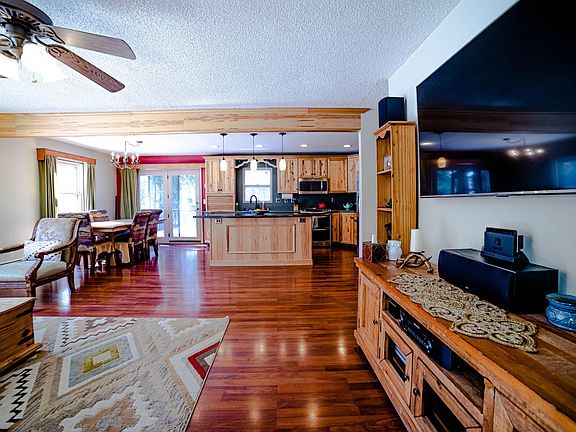 Private setting next to trail to Birch parks. great room concept! Home has two master bedrooms. Main master suite has huge WIC, metal roof, updated kitchen, solid surface tops. Lrg workshop w/outside access. 2 huge storage sheds, 1 w/ 220v & insulation. 4 BRs + office or potential 5th bedroom. Beautiful setting with views of mature trees. MIL potential.