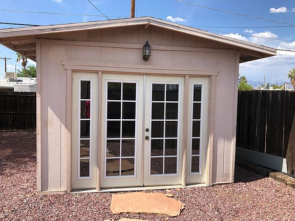 Brilliant Bungalow boasting with a lot of charm! Features include tile and wood flooring, ceiling fans throughout, wonderful built-in shelving for books and decor, updated kitchen cabinetry and more. Nice sized rear yard with covered patio, mature vegetation including huge Mesquite tree and other trees providing plenty of shade. Comes with an incredible detached workshop that could be transformed into your own personal gym, bikes, toy, or gardening tools. This home has desirable North/South orientation and is less than 1-mile from Reid Park and situated just blocks from Hoffman Park, Linden Park, Merle J Tourney Park, Bonillas Magnet Elementary and Aline Weaver Elementary. Near the aviation Bike path and 100-acre woods bike park and conveniently close to grocers, restaurants and more!