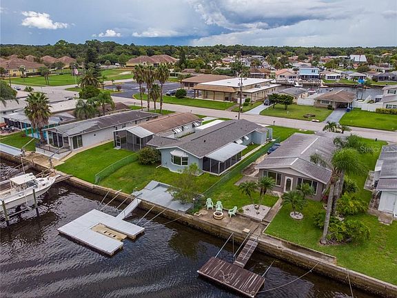 Direct Gulf of Mexico access by way of deep water canal to gorgeous barrier island beaches. Spectacular sunrises and sunsets from the comfort of your private home. Spacious and open 3 bedroom 2 bathroom waterfront block home located in the highly desirable Gulf Harbors. Completely renovated from top to bottom with new shingled roof, new modern flooring throughout entire house including beautiful wood plank ceramic in main living areas, new kitchen with granite counter tops and stainless steel appliances, updated bathrooms including new vanities and professionally tiled shower, new light fixtures throughout, updated electrical, inside utility room with new water heater. Floating dock with ez-doc jet ski ramp. This home is the ideal fishing spot. Enclosed lanai and an over-sized concrete deck perfect for entertaining guests. Double driveway means there is plenty of parking. Two sheds for extra storage as well. Too many upgrades to list. Your new home has it and more. We took the time to get this property right simply bring your boat and start enjoying.