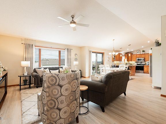 Looking for your dream home? Look no further! This like-new ranch style home, located in the boulder Ridge Development! The home, which has undergone many upgrades and is ready to welcome you with open arms. From the moment you arrive, you'll be impressed by the steel siding and brick exterior, complemented by a beautiful concrete patio and walkway. Step inside and be greeted by an inviting open floor plan, boasting custom kitchen cabinets, stainless steel appliances, updated Cambria quartz counter-tops, and a spacious pantry. The vaulted ceilings add to the sense of space and luxury. The primary bedroom is a true retreat, featuring tray ceilings, a walk-in closet, and a master bathroom with double sinks, a whirlpool tub, and a walk-in shower. Plus, there's another versatile bedroom currently used as an office. Quality is evident throughout, with soundboard in all interior walls, 2x6 construction, and top-of-the-line Anderson windows. Convenience is key with main floor laundry and laundry hookups downstairs. Entertain with ease in the lower level family room, complete with a gas fireplace and recessed lighting, which walks out to the backyard oasis, where the deck and patio all face EAST! And don't miss the 2-zone heating and the patio, stubbed for natural gas and 220 electrical. Lets also talk about that garage - a heated and insulated 4-stall haven complete with a floor drain and hot/cold running water! This home is truly move-in ready and waiting for you to make it your own. Don't miss out on this opportunity - schedule your showing today!