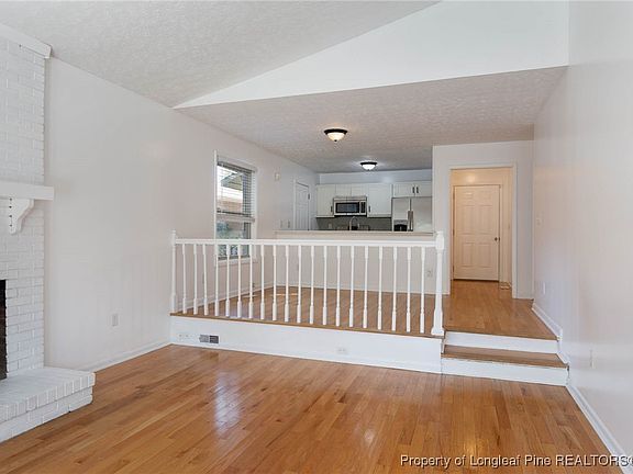 Cozy contemporary house on a corner lot in a gated community! Convenient to Fort Liberty and downtown; minutes from Skibo Rd / the Mall. Pretty brick veneer and corner lot. 2020 updates: New SS Appliances/washer/dryer, new exterior paint, new roof, new countertops, sanded and finish coat on the hardwood floors, new subway tile backsplash, new garage door. 2024: all new interior paint, brand new hallway bathroom remodel, brand new exterior wooden fence around back & side yard, professional landscape design & install in front yard, new mailbox. Kitchen overlooks dining area with railing and sunken living room with vaulted ceiling and wood burning fireplace. Privacy fence in the backyard with oversized patio connecting to both the living room and owner's suite. WIC and 2 sinks in the vanity in the owner's suite. Enjoy community amenities like the pool, tennis courts, playground, and clubhouse (website for HOA: https://threecolonies.com/index.html). Schedule a showing today!