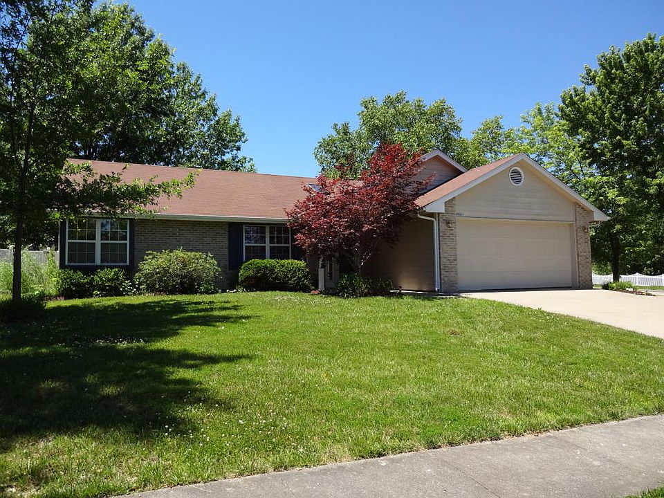 Affordable Pizzazz! Large Open Living/Dining Area with Vaulted Ceilings, FPL, Updated Paint Colors, Newer Laminate Flooring, French Doors to Office/3rd BDR, Screened Patio, Fenced Yard, Landscaping. Refrig, Washer, & Dryer Convey!