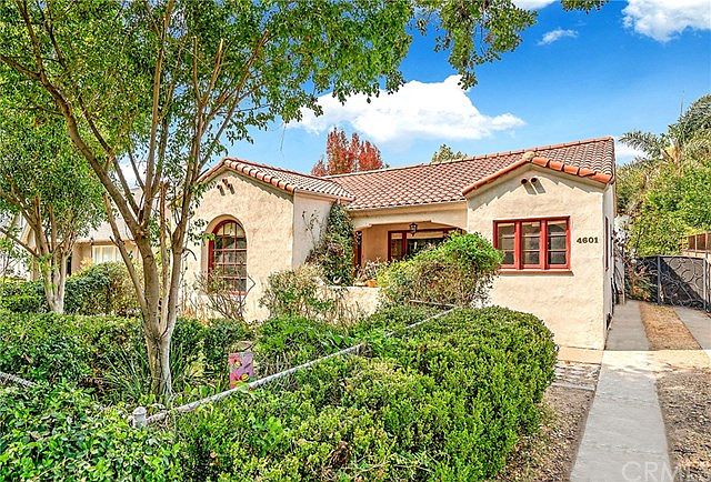 Desirable 1930 Spanish Revival in the Palm Heights Historic District. This 3 bedroom home boasts original hardwood floors throughout, as well as some original fixtures and lots of charm; however, it needs a little TLC. Amazing coved ceiling in the living room with a fireplace that's the focal point in this lovely room, along with an arched walkway leading to the formal dining room. Vintage galley kitchen with super charming breakfast nook (with two separate built-ins), as well as French door leading to the indoor laundry room. Telephone alcove in hallway with large hall closet and linen closet. Bathroom has some original features, like the makeup vanity; however, tub was removed to create a walk-in shower for handicapped access. Narrow Hollywood driveway leads you to a permitted 2-story 2-car garage, along with a vintage barbecue in the far back corner of the yard. Home has central heat, but not central air, and needs some clean-up, but there are good bones here, as are most homes built in this era. Lovely tree-lined street, and walking distance to Riverside Plaza. Realtors, please note special and limited showing instructions which are extremely important to read and follow. We will look at FHA offers.