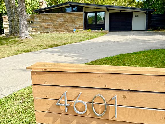 Mid-Century Modern Masterpiece in Devington - Historic Model Home Step into architectural history with this iconic Mid-Century Modern home, originally designed by Fran E. Schroeder & Associates and built by R. F. Wirsching was one of the model homes for Devington. One of 26 contemporary designs in the neighborhood built by R. F. Wirsching, this 1954 ranch showcases the timeless elegance of the era, including striking clerestory windows, a sandstone accent wall, and redwood siding. Awarded "Most Outstanding New Design" by the National Association of Home Builders in 1954, this home blends vintage character with modern updates. Recent improvements include a new roof and copper penny-colored gutter system (2024), HVAC (2020), water heater (2020), and a beautifully remodeled kitchen true to its character (2020) with stainless steel appliances. Situated on a nearly half-acre wooded lot, this home offers privacy, charm, and a connection to nature, while maintaining the sleek, clean lines of classic Mid-Century Modern design. A true gem for collectors, enthusiasts, or anyone seeking a unique architectural statement.