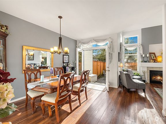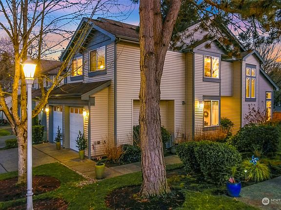 Gorgeous 3 bedroom home filled with light and meticulously cared for. End unit with a stunning living & dining area with French doors to the private yard, and open ceiling to the upstairs loft bonus room. Fantastic floorplan! Sweet kitchen with a casual dining area. The primary suite comes complete with 5 piece bath & walk-in-closet. Upstairs bonus room features a built in desk for the perfect WFH space. 2 car garage + 2 driveway spots & parking for your guests nearby. Spring is coming- enjoy air conditioning, outdoor patio & yard with gas BBQ hookup & colorful mature landscaping as your backdrop + cabana & outdoor pool across the way. Walk to shops, schools & restaurants. Easy commute to downtown, the eastside or SeaTac.