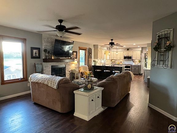WOW! This 4BR, 3BA, Seaman School, walkout ranch is incredibly awesome! EVERYTHING has been updated! Gorgeous Open Floor Plan, with Gas Fireplace. Kitchen has Custom Woods Cabinets, Quartz Counters, Coffee Bar and pantry. Formal Dining Rm, Main Floor Laundry Rm. Beautiful 6-panel hardwood doors throughout. Primary en suite with NEW Bath, double vanities, skylight and Bluetooth lighting. Recently updated Hall Bath with new sliding barn door and more! 2 other BR’s on main floor, one is now used to unwind for “Pinterest Room”. Finished w/o bsmt for entertaining extension with open floor plan, wet bar and loads of windows. 3rd full updated bath. Multiple spaces for everyone. 4th BR with w/I closet. There’s still more! Fun Play Rm, or could be made into a perfect Theater D, large 22x14 Garden garage for xtra storage, motorcycles and equipment. Large 25x12 covered deck on back overlooking over 1.5 green acres, beautiful sunsets and countryside. Fantastic views! Attached 22 x 22 garage (will fit your full size truck!) with nice workshop and storage. Fenced yard and 12x10 shed. And fun firepit to enjoy friends and families. NEW 30-yr Roof being installed before closing! Natural Gas. NO SPECIALS! This is one of those that you don't want to miss out on! Maybe you can host the next holiday party! Open Sunday from 12:30-1:45pm (Still time to attend your Holiday Events)
