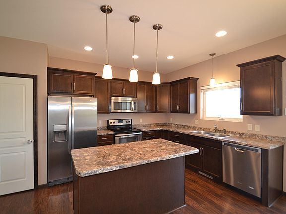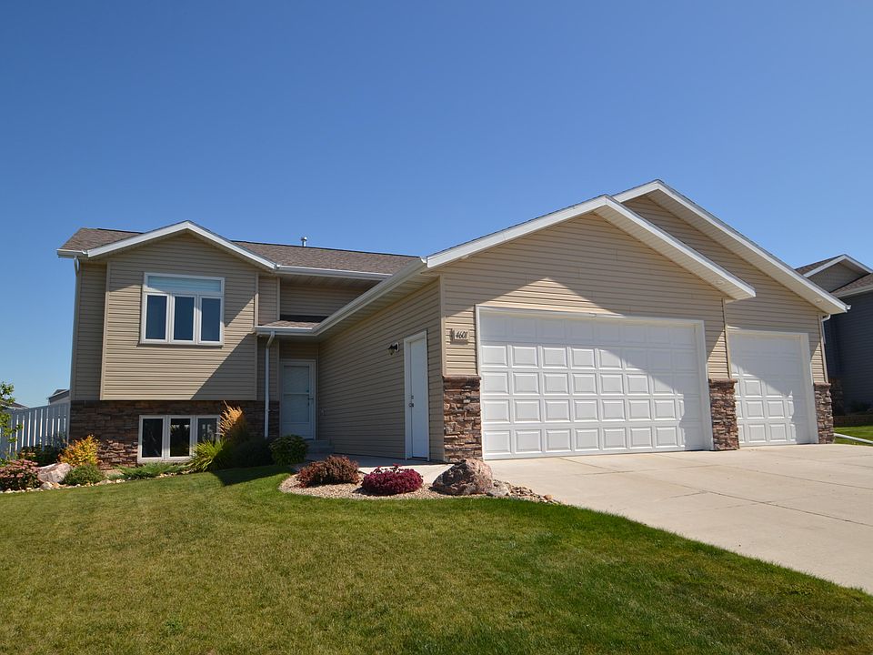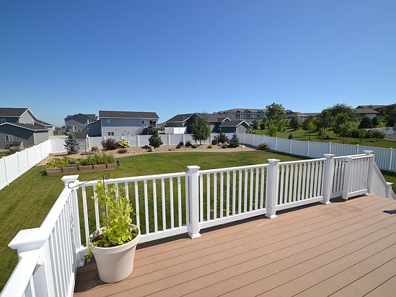 Have you been searching for a home with a large fully fenced yard in a great residential neighborhood? STOP here!! This house was built in 2014 with 5 beds and 3 baths including PRIVATE master suite. As you enter the home the attention to detail is evident with dura-ceramic floors, maple cabinets, large pantry, center island, stainless appliances and custom handrail to showcase the open concept kitchen/dining/living area. As you walk out the dining area onto your over-sized 14 x 20 maintenance free deck you can enjoy the sunrise and MASSIVE backyard which is fully surrounded with maintenance free fencing, underground sprinklers and rock gardens with numerous trees and shrubs. Back inside and down the hallway you will find 2 guest beds, a full bath with linen closet, a master bedroom with suite having a tub/shower and large walk-in closet. As you head downstairs you will find a family room with gas fireplace, 2 guest bedrooms with great closets and daylight windows, another full bath and nice sized laundry room with folding counter. The garage is fully finished to include epoxy finished floors, heat, h/c water and floor drain. DO NOT miss this fantastic property contact a Realtor today!