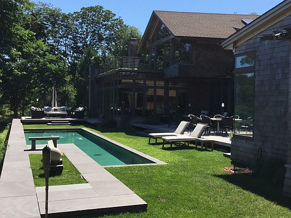Enjoy a carefree summer by the pool at this renovated property located on Sag Harbor Cove. The pool area, decks and gardens have been created as lush outdoor living spaces providing an oasis for your relaxation and entertaining. There are kayaks and paddle boards also available for use on the cove.A caretaker will assist you during your stay. Want to hold a dinner party by the pool for 30+ guests? He will arrange it! The main house features a fully equipped open chef's kitchen with expansive marble Island, dining room and great room with high ceilings designed to accentuate views of the pool, cove and gardens. There is also a breakfast area and library on the first floor. The second floor has a Master en suite bedroom with breathtaking views and one en suite guest bedroom and two guest bedrooms with a shared bath.The property includes a pool house/guest cottage which is linked to the Main House by the deck and pool. It includes a separate laundry, guest bedroom, loft, full bath, living room and writers study. The property also has ancillary options; a Cottage screening room, two studio out buildings and an adjacent three bedroom home.Located one block from the start of Sag Harbor Village Main Street, a picturesque walk to shops, entertainment, and restaurants or walk to Mashashimuet Park for tennis, playground and ball fields. Conveniently located near Long Beach and Ocean Beaches.