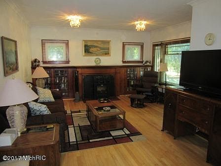 Two bedroom bungalow with one and a half acres on the corner of M-63 and Pier Road.